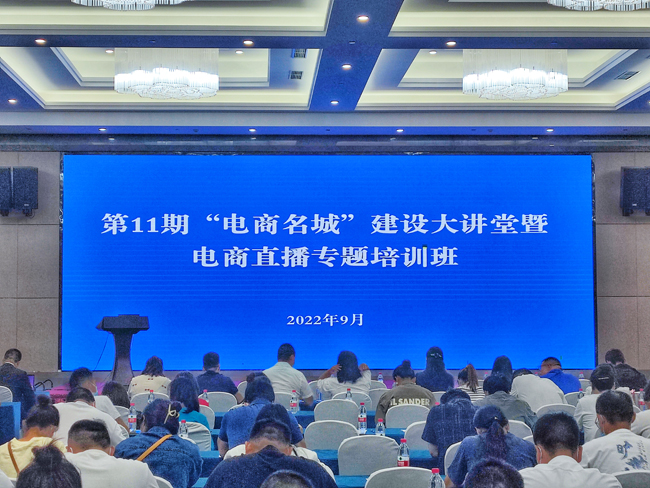 近日,由宿遷市商務(wù)局主辦的第 11 期“電商名城”建設(shè)大講堂暨電商直播專題培訓活動在泗洪開課。園區(qū)組織電商園四通科技、光速傳媒等五家企業(yè)十余人參加了培訓。